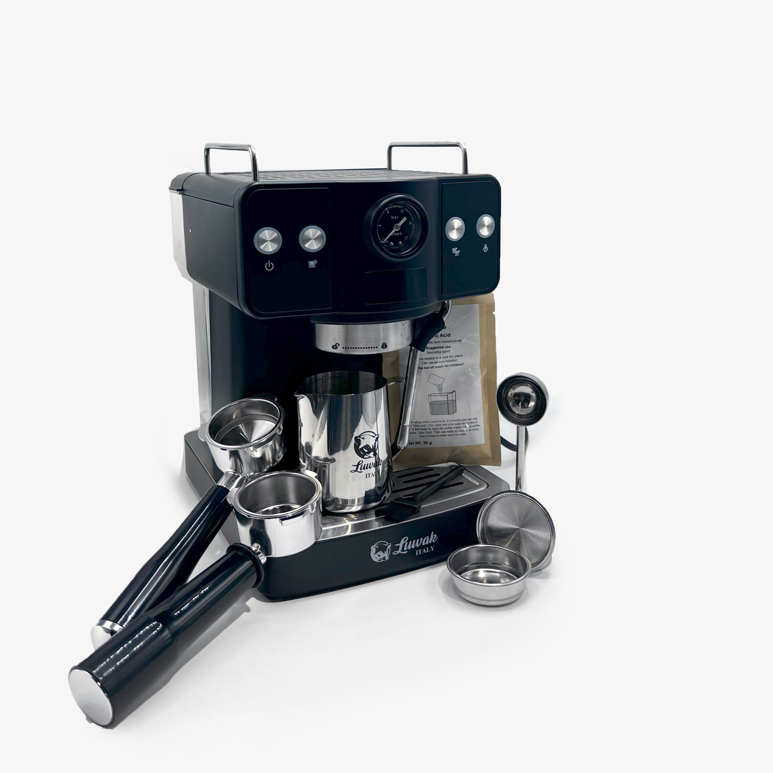 - اقلام همراه: پرتافیلتر ناودونی، پرتافیلتر نیکد، دو عدد بسکت دوبل، یک عدد بسکت تک، پیچر، پودر رسوب زدا، پیمانه استیل، فرچه و دفترچه راهنما